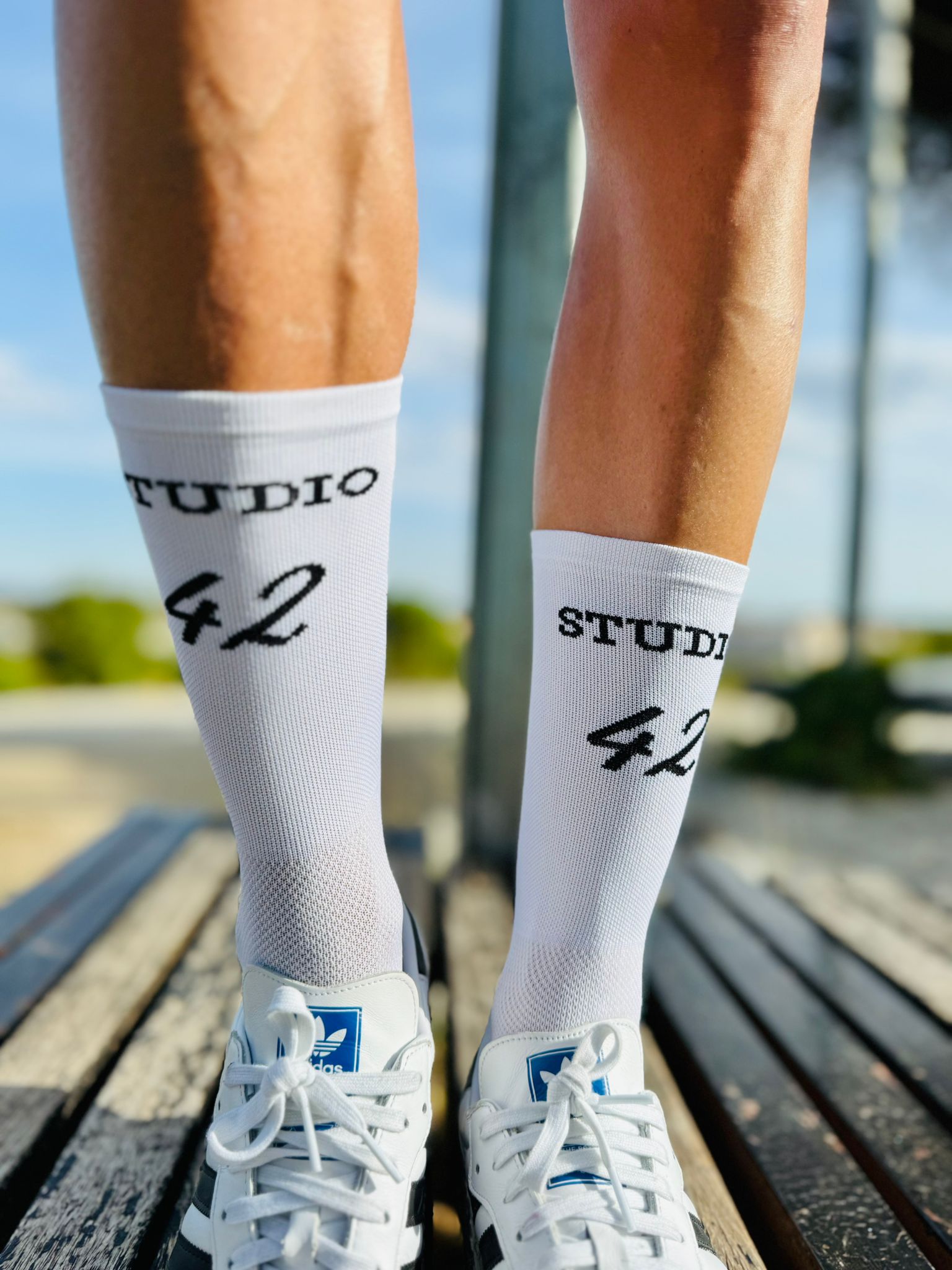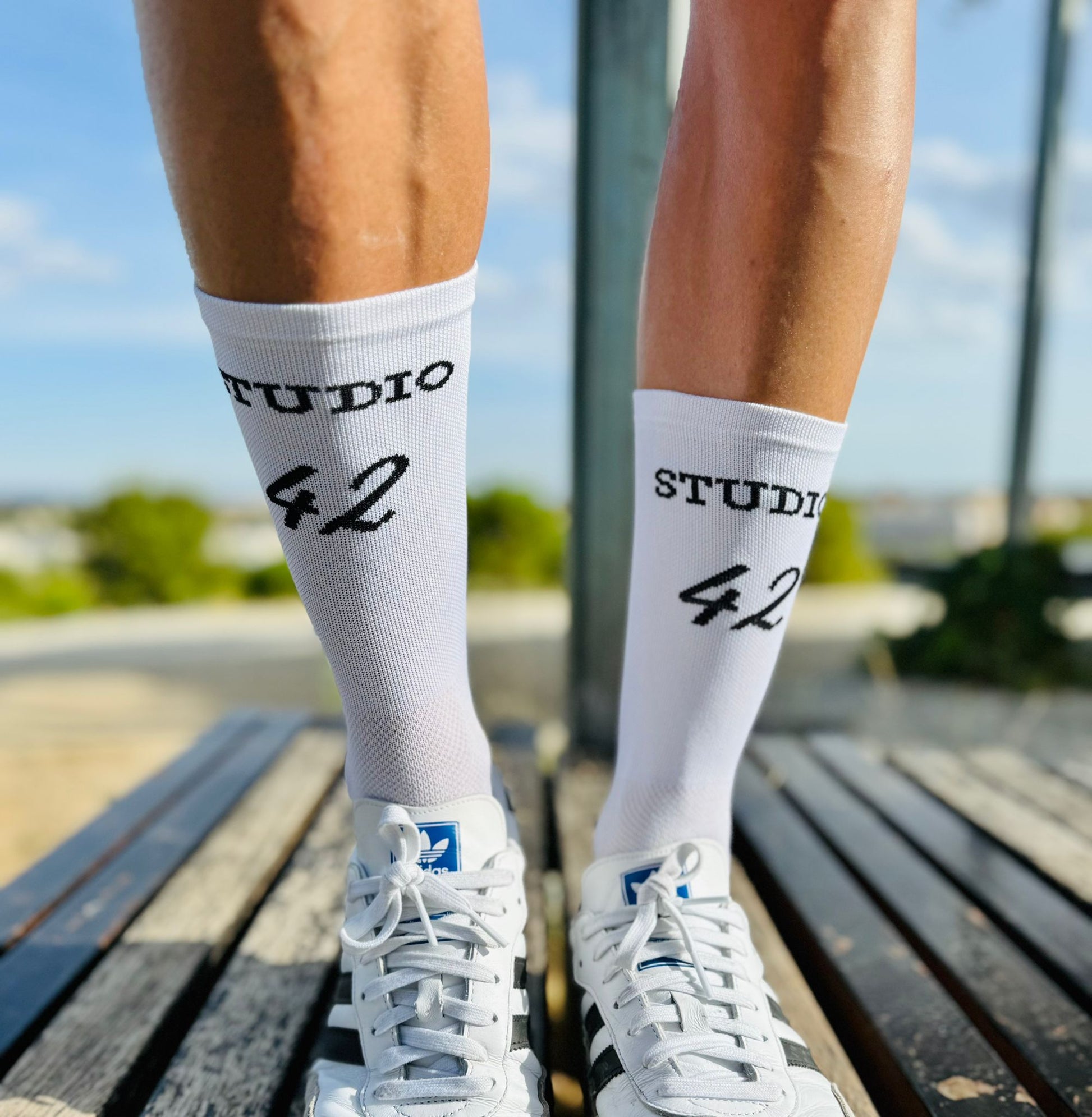 Calcetín enfocado para running y ciclismo, modelo LA CRUZ. Modelo extrafino para entrenamientos exigentes y personas con alta sudoración en los pies o días muy calurosos.